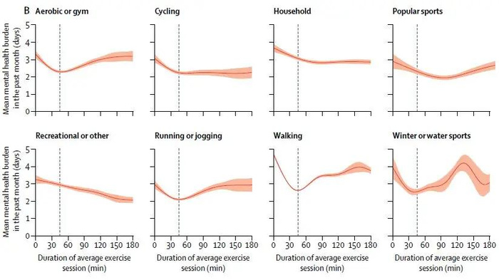 很多人认为锻炼得越久越好,运动多多益善。《柳叶刀》的研究发现,这个想法是错的。